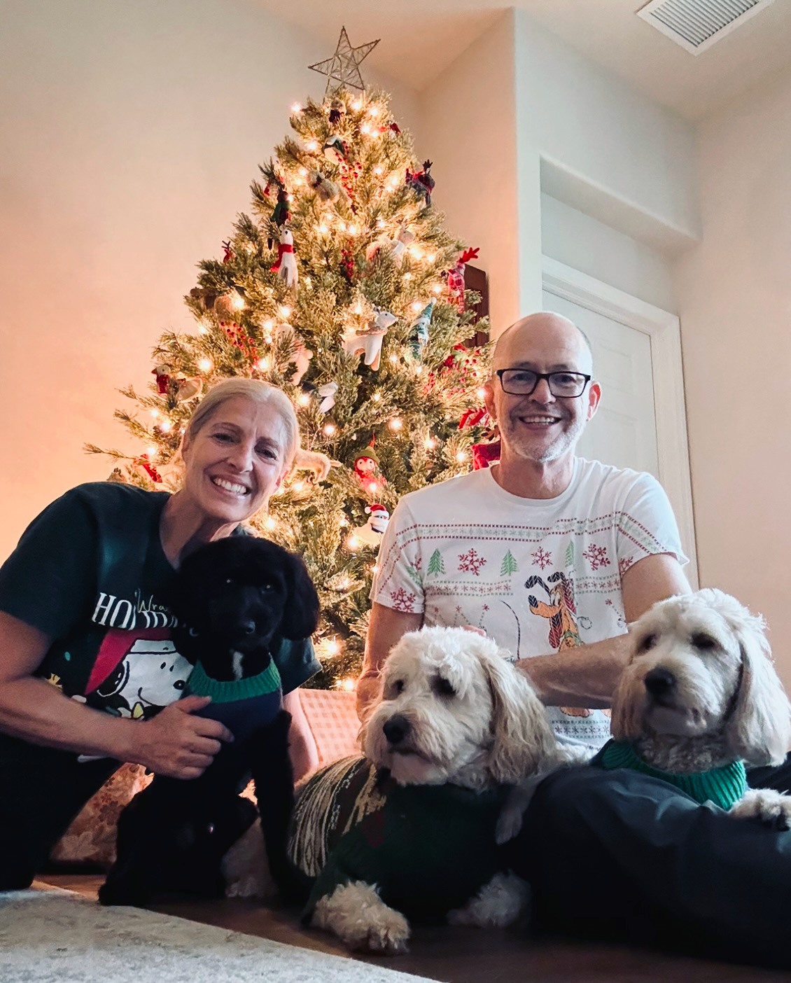 As parents of four children and grandparents to ten grandchildren, Bob and Stephanie have passed their love for dogs on to multiple generations. Dogs have always been woven into the fabric of their family life, teaching responsibility, companionship, and unconditional love. Today, they share their home with three beloved Golden Doodles—Magnolia, Basil, and Zeb—who embody the joy and loyalty they hope every family will experience. Their greatest desire is to help others discover the same lifelong companionship and happiness that a well-raised family dog has brought to their own home. 🐾
